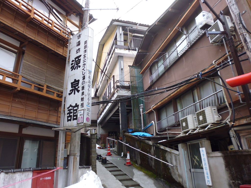 事前にYOUTUBEで予習しておいたが、身体を洗ったら、まず約30℃の源泉に20分。そのあと沸かし湯に2〜3分。これの繰り返し。逆ならまだしも、最初から冷たいのは気合いを要す。そして沸かし湯につかってもちっとも温まらない。真夏なら気持ち良かろう。とはいえ、繰り返して入浴するうちに身体の芯まで温泉が染み入るような気がしてくる。武田信玄が川中島合戦での傷を癒したとの歴史を持ち、温泉旅館としても約250年の歴史があるという。すがる思いで湯治に訪れる客も多いようだ。