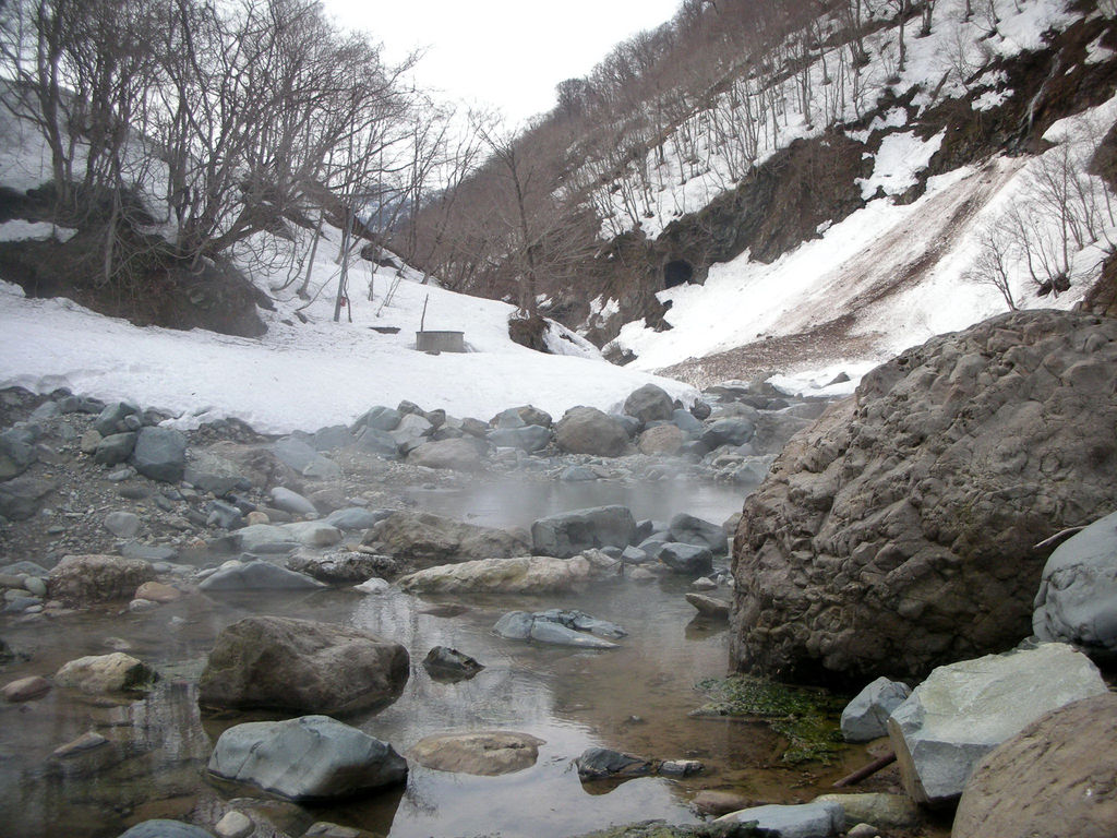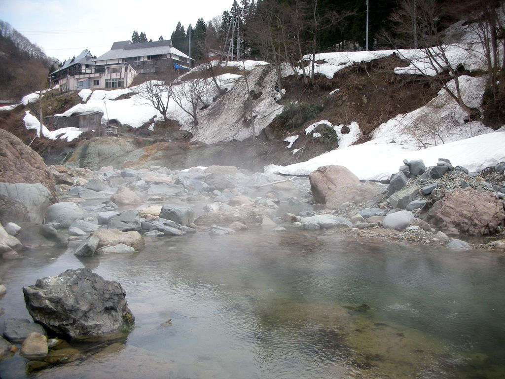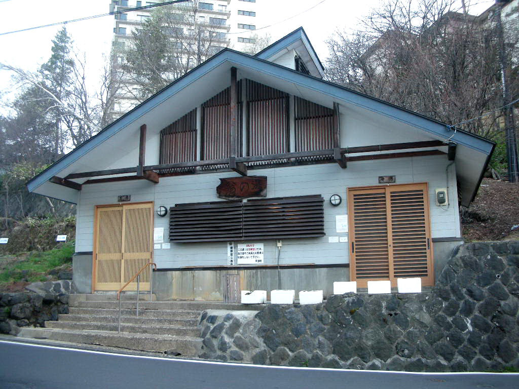 草津温泉の共同浴場はどこも集会場のような素朴な佇まいだが、そのなかでも喜美の湯は玄関のひさしがむくり屋根のせいか、お寺や神社のようにも見える。国道292号線から草津温泉街への玄関口にあたる草津交差点の近くにあり、文京区民会館の裏手に建つ。住宅に囲まれており目立たないが、夕暮れになると地域住民が訪れる。この日は入れ替わりで7〜8人の姿を目にした。間口は狭いがそのぶん奥行があり、玄関を入ると、トイレ、脱衣所(棚とカゴのみ)、そして浴室。4帖ほどの湯船に湯桝からお湯が注がれる。湯畑源泉の青白いお湯だが、客の多い時間帯だからかほどほどの湯加減。湯船のふちや壁には木が設えてあり、なかなか風情がある。観光客向けの施設ではないので、「もらい湯」の心がけは忘れずに。