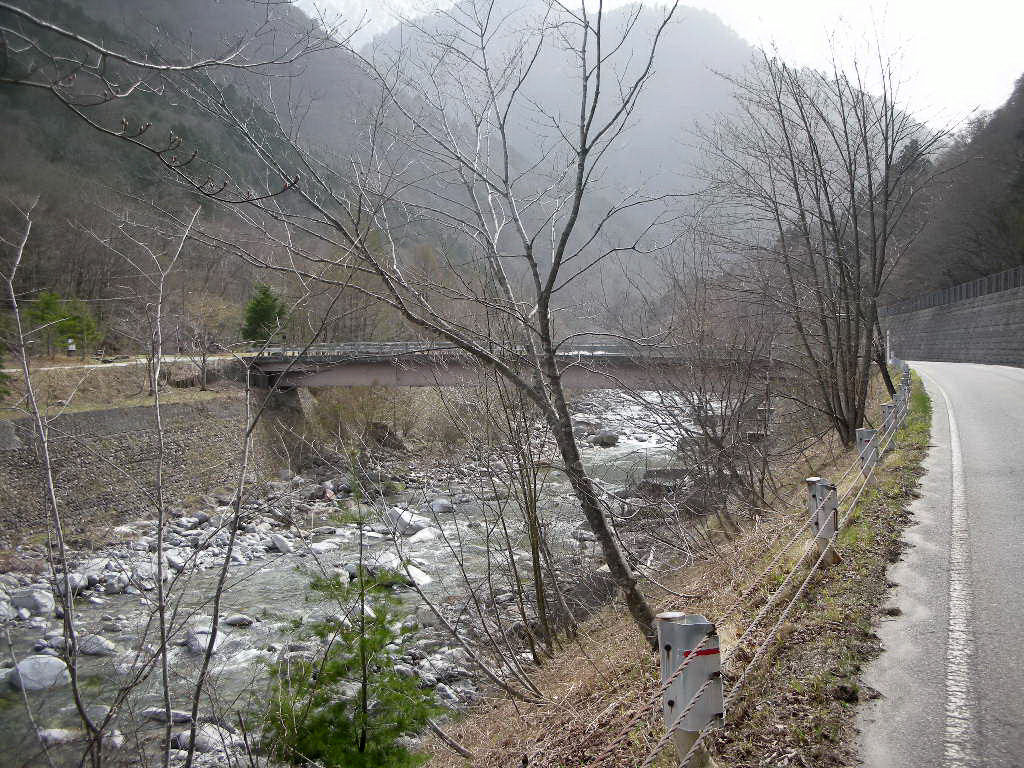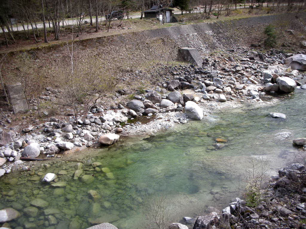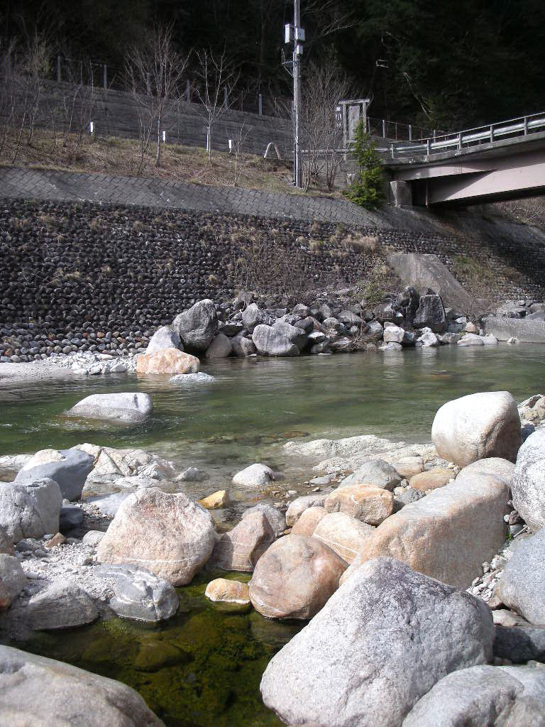そこから先は未舗装の道。駐車場は石碑のところに適当に。やがて旅館の建物が見えてきた。旅館と自宅は向かい合って建っている。