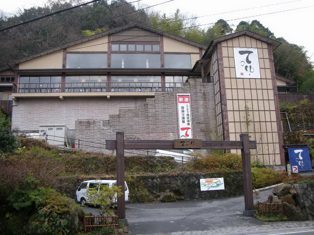 露天風呂からの景色は、1階の食事処からの景色と同じ。目の前の山々を一望することができる。箱根の場合は植生が多種多様なので、秋はすべてが紅葉するわけではないが、まだらな色づき具合も自然な様だともいえる。意地悪な言い方をすれば、宮ノ下の共同浴場「太閤湯」(→記事)から見る景色とたいして変わらないのだが、太閤湯より開放感があるのはもちろんのこと、てのゆでは気持ちのよい風に吹かれての入浴である。箱根に日帰り温泉は数あれど、大自然の景色を満喫できる施設は貴重だ。なお、浴室は男女日替わりとなっている。湯船の種類はたいして変わらないが、眺める山の方向が若干ずれているという程度の違いか。