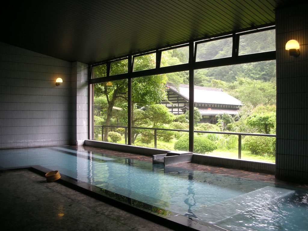 階段を下っていちばん奥に浴室。こじんまりとした旅館だから、脱衣所や浴室もまたこじんまりとしている。浴室内には湯気が立ち込め、扉を開けっ放しにすると警報機が鳴る場合があります云々の貼り紙。そして脱衣所にもあった。「一回の入浴時間を5分〜10分程度を1、2回で十分」。無色透明の温泉がかけ流しされており、肌ざわりもよく、身体がじんわりと温まる。壁一面に書かれた名湯自慢をひとしきり読んでいるうちに、確かにこれはのぼせる温泉だな、と。数ヶ所の医大や柏市の整形外科、県内だと七沢リハビリ病院など、「医師から推薦状を戴いている」といった説明がつらつら。