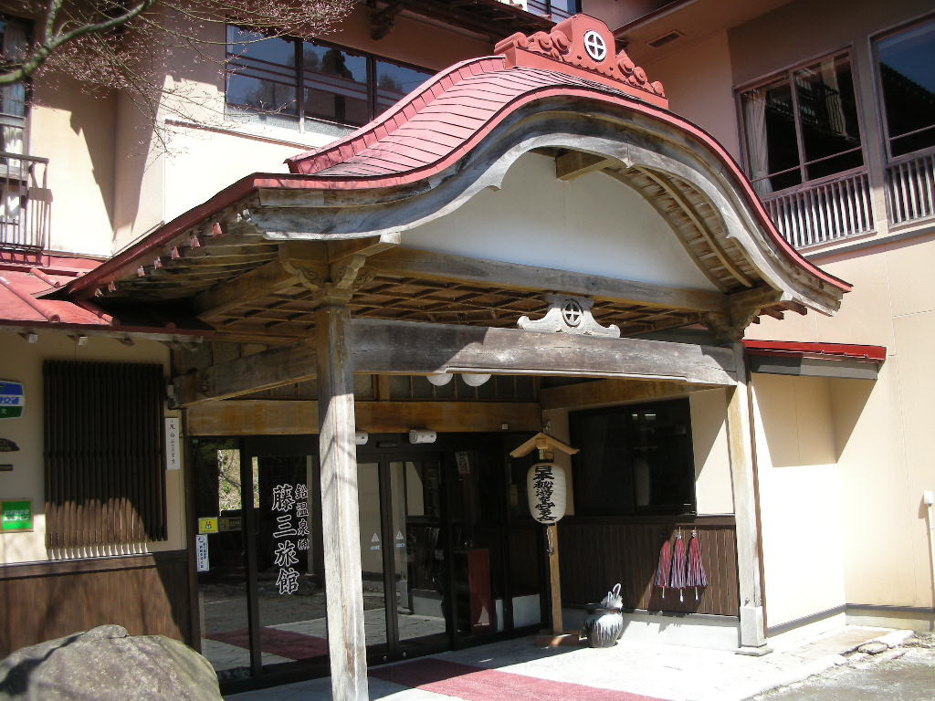 大沢温泉の歴史は古く、延暦年間(約1200年前)に坂上田村麻呂が傷を癒したという伝説が残る。また、慶応3年(1867)には南部藩主40代利剛公が湯治に訪れ、ほかにも宮沢賢治や高村光太郎が訪れている。豊沢川に架かる曲がり橋より周囲を見渡すと、茅葺きの菊水館といい、田舎風情の自炊部といい、昔にタイムスリップしたかのような風景である。ホームページには大正末期の写真が載っているのだが、当時と何も変わっていないのだ。