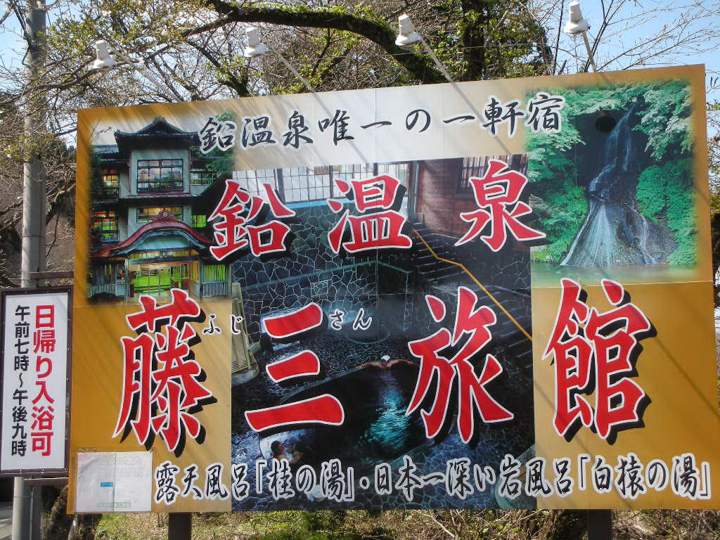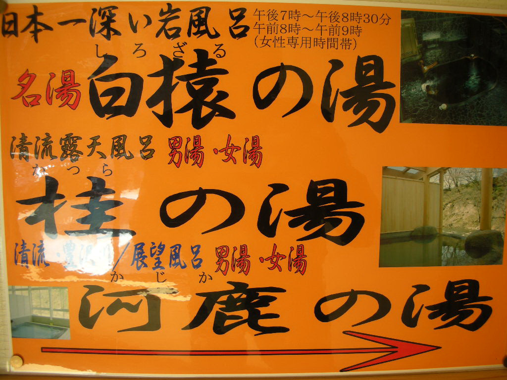 以上4ヶ所の風呂に入浴したが、自炊部には女性専用の露天風呂「かわべの湯」もある。温泉はすべて無色透明で、わずかにぬめり気があるが、肌ざわりはつるつる。ごく一部で循環処理を行っている。建物の雰囲気もそれぞれ個性的だったが、風呂もそれぞれが個性的だった。土手には山桜が咲き、春の息吹を感じさせてくれたが、新緑や紅葉の時期には、贅沢な景色を堪能できるのではないだろうか。