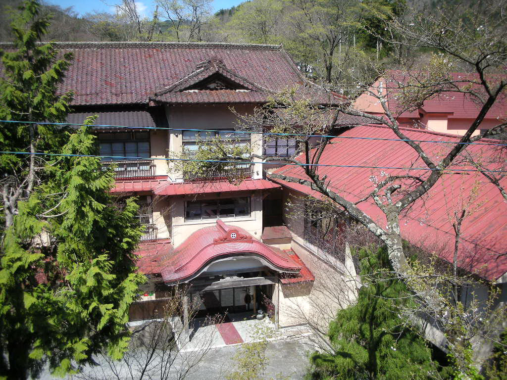 まずは自炊部玄関よりいちばん近いところにある、山水閣の地階にある「豊沢の湯」へ。豊沢川に面して大きな湯船が1つあり、ホテルの大浴場っぽい雰囲気。しかしながら大きな岩を組み合わせた湯船で、半露天のつくりであったが、夏場以外はガラス戸を設けて内風呂へと様変わりするようだ。川面まで2〜3mの高さにあり、対岸は雑木林となっている。まだ新緑の時期には早く、枯れ木ばかりであったが。大沢温泉の風呂の中で、最も万人受けするのが豊沢の湯だろう。