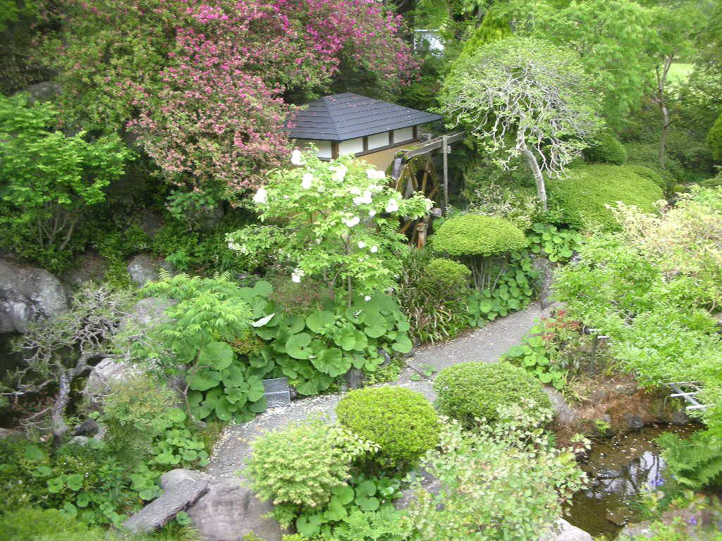 敷地内の庭園はお見事。池や水車小屋まであって野趣に富んでいる。またしても赤い橋を渡って玄関へ。フロントで料金を支払うが、いまホームページで確認してみると、入浴料は800円・タオルは200円。タオルを持参したのに、その有無を尋ねられることもなく1,000円取られたのだが…。脱衣所は棚しかないので、貴重品はフロントで預かってもらう。紙に名前と時間を記入するが、1時間の制限はこれで確認しているのだろう。